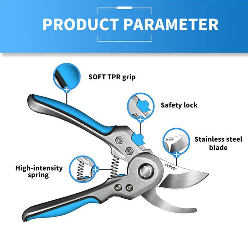 As podadoras de aço inoxidável possuem Soft TPR Grip, trava de segurança, lâmina de aço inoxidável e mola de alta intensidade.